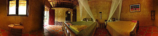 Six mud-brick and thatch bungalows are currently available, overlooking the rainy-season creek, deep in the valley.