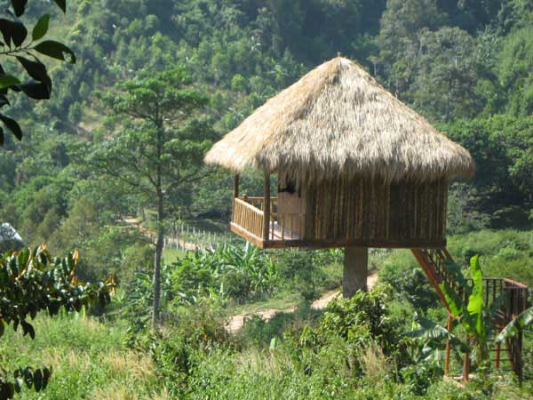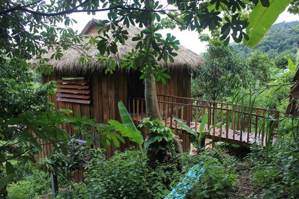 One 'tree-house' was completed late 2009 and the first guest booked for two nights, but stayed for 20. The second 'tree-house' was soon added, with a garden bathrooom downstairs, a big open bedroom and a large, semi-detached terrace. The 'tree-houses' have wonderful views across the bay to Vietnam as well as a spectacular panorama of the jungle and mountain across the valley.