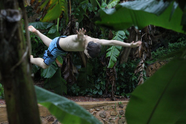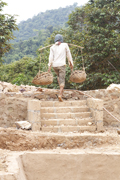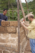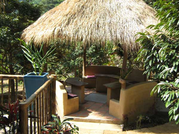 The restaurants/bars (complete with upright piano), sit by the stream-fed (during the rainy season) natural swimming pool, where you can swim, or relax as the fish 'massage' you all over! Jasmine Valley also has a 'games room', complete with pool table, table tennis and foosball (table soccer), as well as an amphitheatre for occasional performances and what we're told is the first skateboard bowl in South East Asia. In Jasmine Valley, you can spot for Monkeys in their natural habitat in amongst the trees on the mountain - you may even be lucky enough to spot a Great Hornbill - right from your own veranda. Learning Together Jasmine Valley Eco-Resort had its beginnings early in 2009. Through the initial stages, only hand tools were used, in keeping with the valley's peaceful ambience. Picks and shovels, hammers and chisels were used, even when digging the driveway. The early part of the construction was very much a learning process, as Owen, a filmmaker from Australia, and the Cambodian builders got to know each other, and how the other worked. By the time the house was built, the Khmer team had built with mud-bricks, constructed a pizza over and created beautiful tile mosaics. The next phase, was to make lots of mud bricks, organise bamboo and thatch, and begin construction in earnest. It was important to Owen and Jasmine that the buildings were created in response to, and in harmony with, the natural beauty already present. As a filmmaker, it was also important to Owen that creative license was given to those working in each area of construction. For those interested in the building process, here are some photos available of the very early stages as well as some pics around the valley. |