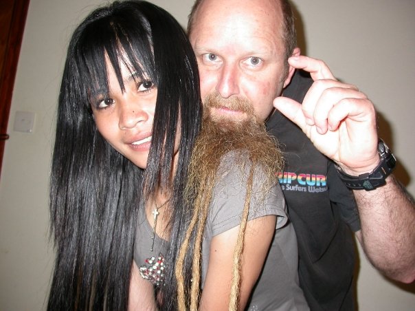 Owen 's Story - in brief Owen was born on an island off the coast of Papua New Guinea to Tinsley and Margaret Beck. He was the middle child of five kids. He lived in Australia most of his life, and besides many a creative career change (wetsuit design, clothing design, music, film), he has always had a heart for people and a passion for justice. As a twenty-year-old, Owen lived in a surf-town called Torquay in Victoria, Australia, where he designed wetsuits. Once a week he would pick up teenagers who had run away from home to live the surfing life, and would give them all a good feed. It was greatly appreciated by these kids, who didn't really eat much other than canned baked beans! During the late 1980s, Owen designed clothes and had a small retail outlet. On his way home on Saturdays, he would stop by in poorer neighbourhoods and give clothes to folks who looked like they needed them. Owen married and had two children, Gracie and Noah. When they were five and ten years old, there was a family crisis and Owen decided to teach film as a career change which allowed him to be with Gracie and Noah during school holidays. An outward symbol of Owen's grief during the following 7 years was a beard that became a tangle of dreadlocks to below his belt. It was a particularly traumatic time for Owen and his family, and he decided to find people less fortunate than himself to engage with, as a catharsis. He, Gracie and Noah, went to a downtown park in Perth and asked some street-dwellers to join them in a barbecue. This became part of their regular weekly routine and there were eventually about fifty people gathering for a communal meal every Sunday. This was a wonderful time of reconcilliation between white Australians and Aboriginal Australians. After the 2004 tsunami, Owen traveled to a town called Meulaboh in Aceh, solo, and documented his journey on video. He used the film to raise funds to buy bicycles for kids in an IDP camp (Internally Displaced People). He took his film to Christian Churches to raise money to support Fundamentalist Islamic people who were suffering, asking them to buy a bicycle as a Christmas present. This was another exercise in nurturing tolerance, peace and care for those unlike ourselves. On boxing day 2006 (the second anniversary of the tsunami), Owen and his ten-year-old son, Noah, delivered 270 bicycles to kids in Meulaboh. If you're interested, you can see more of this chapter of Owen's life here including videos and a study on trauma and storytelling that relates to this journey. Around the same time, Owen began traveling to Cambodia with his students to make documentary films for the purpose of fund raising and awareness. In 2007, he met Jasmine at a cafe in Phnom Penh. They were both 'at a time in life' that made such a crossing of paths quite profound. Jasmine cut Owen's beard and they married six months later. Owen wanted to build a place in a natural environment for his wife to be nourished, since she was deprived of the childhood nurture most take for granted. He wanted it to be a place where Cambodians would learn to respect nature as well as a place for travelers and Cambodian residents to relax in the jungle. The result is Jasmine Valley Eco-Resort. Three years after opening for business, Owen has been able to take a back-seat and Jasmine has taken the helm. For someone with virtually no formal education, she is doing an incredible job.