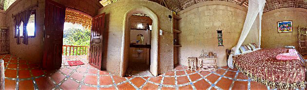 Room 5 is a 6x4m mud brick bungalow with a thatched roof. It's roomy, with ensuite and a double bed. This bungalow sits on the rainy season creek, which should be flowing during the wet season. We're currently preparing for the wet season by lanscaping the creek and creating swimming, or sitting pools in front of bungalows 1 to 5. Deep in the valley, your view is an intimate view of the jungle and mountain. For an interactive quicktime image of Room 5 click here, otherwise, there's a quick video tour below.