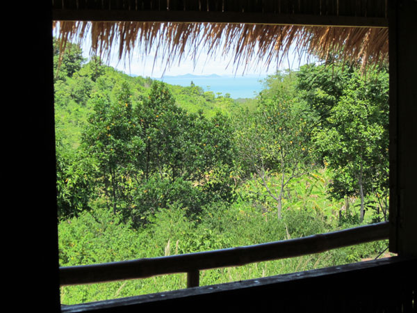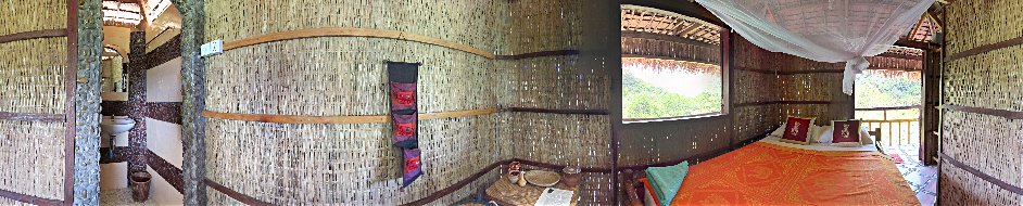 Room 7 is a small 'treehouse' perched atop what will one day be a big bogainvillia bush. It has panoramic views with glimpses of Vietnam across the sea and breathtaking views of the valley, mountain and jungle. It has an ensuite bathroom.